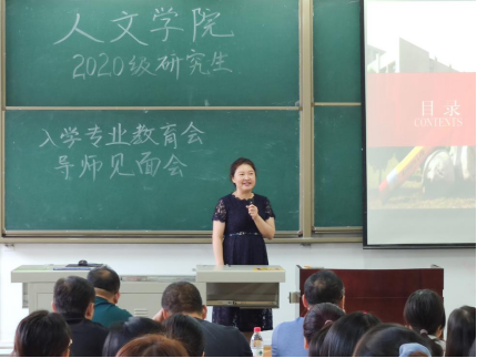 2020年9月11日上午9点,2020级研究生专业教育大会暨导师见面会在人文学院鄠邑校区B210教室正式举行。本次会议由人文学院副党委书记盛丹主持,人文学院党委书记余小勇、院长李涛、副院长方松林、研究生秘书张盼、辅导员崔馨文以及2020级人文学院研究生指导老师出席此次会议,107名2020级研究生新生参会。