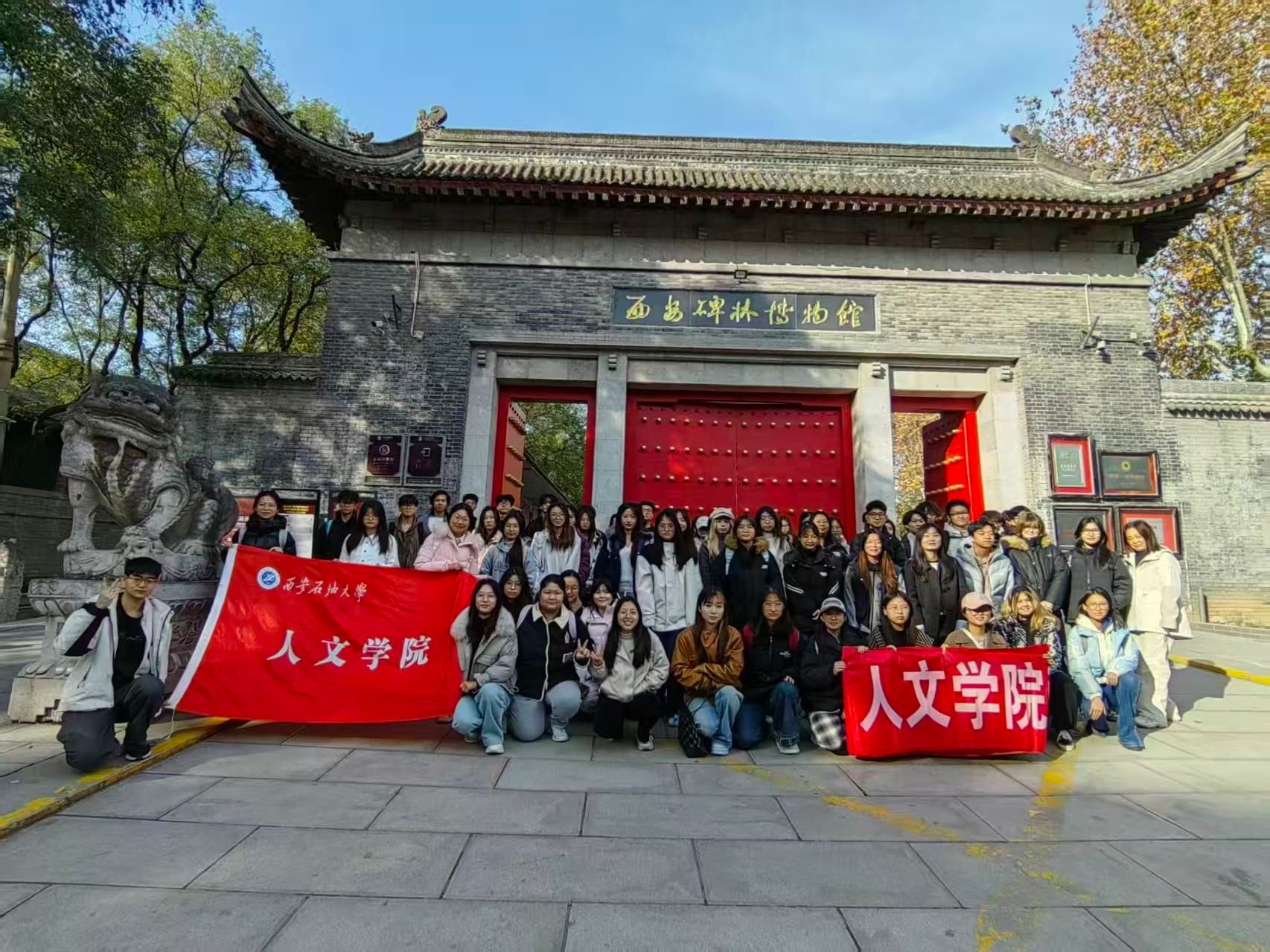 2025年11月23日,人文学院2024级汉语言文学专业全体同学及6位留学生,在郑莉、赵文婷、贺颖3位老师的带领下开展了认知实习,先后参观了西安碑林博物馆、书院门以及陕西考古博物馆。