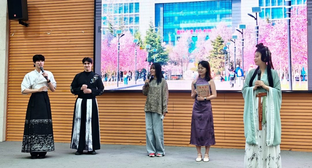 2026年4月22日上午,我校第五届“国际中文日”活动于崇文楼118号活动中心成功举办。人文学院院长方亭、中文系教授柯卓英、副教授郭明军、辅导员李峤、学生代表23级研究生赵月,以及2025级国际中文教育专业硕士研究生、汉语言文学专业本科留学生等共同参加了此次活动。